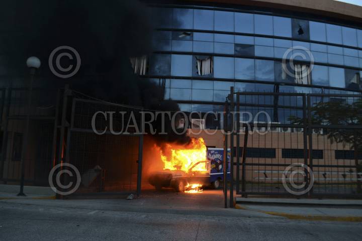 CHILPANCINGO, GUERRERO, 08NOVIEMBRE2014.-15 automóviles dañados unos incendiados y los vidrios rotos del Palacio de Gobierno fue el saldo después de que decenas de encapuchados causaron destrozos en edificios públicos esto en demanda de la presentación con vida de los 43 estudiantes desaparecidos, estudiantes de la normal de Ayotzinapa. FOTO: JOSÉ I. HERNÁNDEZ /CUARTOSCURO.COM