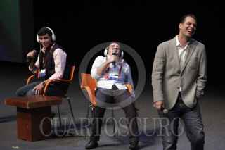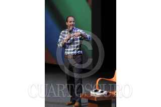PUEBLA, PUEBLA, 08NOVIEMBRE2014.- Los comentaristas deportivos Luis García y Christian Martinolli, durante su presentación en el festival La Ciudad de las Ideas: Change the World, que se lleva a cabo en el Complejo Cultural Universitario de la BUAP. FOTO: HILDA RÍOS /CUARTOSCURO.COM