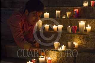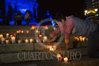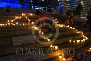 MÉXICO, D.F., 10NOVIEMBRE2014.- Un grupo de personas colocó veladoras en el Ángel de la Independencia, en apoyo a los 43 normalistas de Ayotzinapa, que desaparecieron en Iguala, Guerrero. FOTO: ISAAC ESQUIVEL /CUARTOSCURO.COM