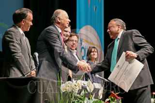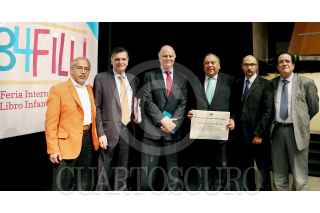 MÉXICO, D.F., 11NOVIEMBRE2014.- En el marco de la 34 Feria Internacional del Libro Infantil y Juvenil 2014 organizada por Conaculta, el Gobierno del Estado de México recibió el premio CANIEM al Arte Editorial 2014, por el libro El mundo en una sola mano. Este texto ayuda al lector moderno a entender aspectos de los espacios que preservan los libros y analiza el papel que desempeñó el bibliotecario en el mundo novohispano. FOTO: CUARTOSCURO.COM