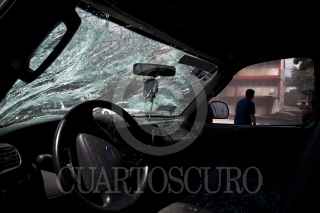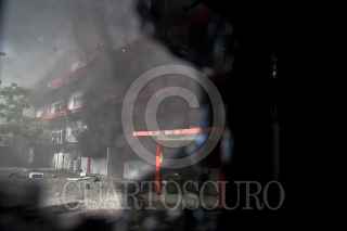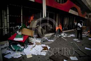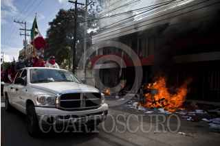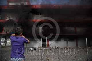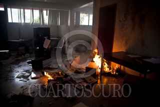 CHILPANCINGO, GUERRERO, 12NOVIEMBRE2014.- Integrantes de la CETEG y algunos normalistas en apoyo al caso Ayotzinapa, quemaron las instalaciones de la Contraloría ubicada sobre la autopista del sol. FOTO: RASHIDE FRIAS /CUARTOSCURO.COM