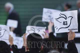 MEXICO, D.F., 13NOVIEMBRE2014.- El Secretario de Educación, Emilio Chuayfett, fue increpado por un grupo de manifestantes que portaban carteles referentes a los 43 normalistas secuestrados por grupos policiacos el pasado 26 de septiembre en la ciudad de Iguala, Guerrero. FOTO: CUARTOSCURO.COM