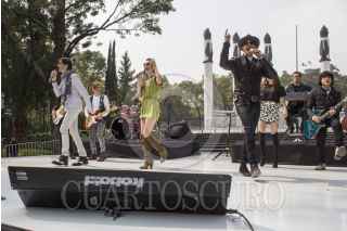 MEXICO, D.F., 13NOVIEMBRE2014.- Los cantantes Benny Ibarra, Sasha Sokol y Erik Rubín presentaron esta mañana su último material discográfico titulado "Vuelta al Sol", frente al Altar a la Patria, en el Bosque de Chapultepec. FOTO: DAVID POLO /CUARTOSCURO.COM