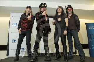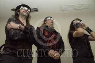 MEXICO, D.F., 14NOVIEMBRE2014.-La banda española de Rock, Mago de Oz, ofreció una conferencia de prensa para anunciar su gira por México con motivo del lanzamiento de su nuevo disco "Illusia", el cual irá acompañado de un largometraje en tercera dimensión. La banda aprovechó la conferencia para pedir un minuto de silencio por "esos 43 estudiantes de Ayotzinapa que no han aparecido sus cadáveres ni sus cuerpos… y mostrárles que Mago de Oz se solidariza con ellos y con sus familias", aseveró Txus di Fellatio, líder de la banda. FOTO: DAVID POLO /CUARTOSCURO.COM