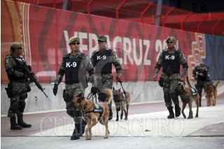 BOCA DEL RÍO, VERACRUZ., 14NOVIEMBRE2014.- Elementos antimotines de la Fuerza Civil y Policía Federal resguardan las inmediaciones del estadio Luis Pirata Fuente donde se llevará a cabo la inauguración de los Juegos Centroamericanos y del Caribe 2014. FOTO: FÉLIX MÁRQUEZ /CUARTOSCURO.COM