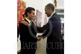 BRISBANE, AUSTRALIA, 15NOVIEMBRE2014.- El Titular de Ejecutivo Federal, Enrique Peña Nieto, conversó con el Presidente de los Estados Unidos de América, Barack Obama, en el marco de la Recepción en la Galería de Arte Moderno de esta ciudad, que ofreció el Primer Ministro de Australia, Tony Abbott, a los Líderes integrantes del G20. FOTO: PRESIDENCIA /CUARTOSCURO.COM