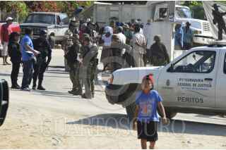 ACAPULCO, GUERRERO., 16NOVIEMBRE2014.- Durante la madrugada en un puesto de revisión, en la comunidad de La Concepción murieron 5 personas tras un enfrentamiento entre supuestos miembros de las gravilleras e integrantes de la Cecop, al lugar llegaron elementos del Ejercito y ministeriales quienes resguardaron el área y realizaron las indagatorias correspondientes. FOTO: BERNANDINO HERNÁNDEZ /CUARTOSCURO.COM