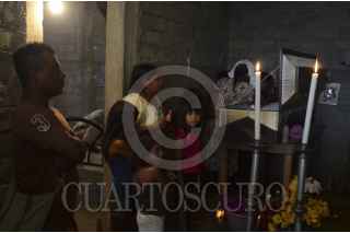 ACAPULCO, GUERRERO., 16NOVIEMBRE2014.- Familiares y amigos acuden al velorio de Celerino, quien murió tras un enfrentamiento a balazos con supuestos trabajadores de la empresa gravillera Kimbar, ocurrido frente a la casa de justicia adaptada, en los bienes comunales de Cacahuatepec, y que dejó como saldo cinco adultos muertos al lugar llegaron elementos del Ejercito y ministeriales quienes resguardaron el área y realizaron las indagatorias. FOTO: BERNANDINO HERNÁNDEZ /CUARTOSCURO.COM