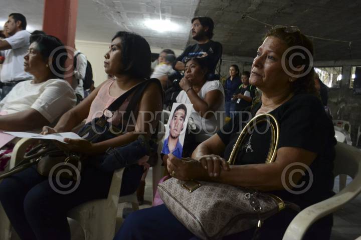 IGUALA, GUERRERO, 18NOVIEMBRE2014.- Familiares de desaparecidos de Iguala y municipios de la región norte de Guerrero, llenaron su solicitud para que les sea tomada el ADN para identificar los 38 cadáveres encontrados en las fosas clandestinas de esta ciudad. Unos 60 familiares de personas desaparecidas se reunieron en la parroquia de San Gerardo Mayela con Julia Alonso Carvajal de la organización Ciencia Forense Ciudadana, quien les explicó el proceso para de identificación. Madres, padres, hermanos, esposas e hijos rompieron el silencio y hablaron de como sus familiares fueron secuestrados por el ejército, policía estatal, federal, así como del crimen organizado. Los restos humanos pertenecen a las fosas clandestinas de Pueblo Viejo y Cerro Gordo a raíz de la búsqueda de los 43 estudiantes normalistas secuestrados por la Policía Municipal. FOTO: JOSÉ I. HERNÁNDEZ /CUARTOSCURO.COM