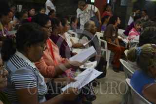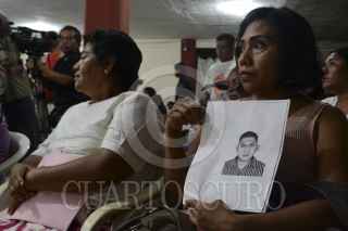 IGUALA, GUERRERO, 18NOVIEMBRE2014.- Familiares de desaparecidos de Iguala y municipios de la región norte de Guerrero, llenaron su solicitud para que les sea tomada el ADN para identificar los 38 cadáveres encontrados en las fosas clandestinas de esta ciudad. Unos 60 familiares de personas desaparecidas se reunieron en la parroquia de San Gerardo Mayela con Julia Alonso Carvajal de la organización Ciencia Forense Ciudadana, quien les explicó el proceso para de identificación. Madres, padres, hermanos, esposas e hijos rompieron el silencio y hablaron de como sus familiares fueron secuestrados por el ejército, policía estatal, federal, así como del crimen organizado. Los restos humanos pertenecen a las fosas clandestinas de Pueblo Viejo y Cerro Gordo a raíz de la búsqueda de los 43 estudiantes normalistas secuestrados por la Policía Municipal. FOTO: JOSÉ I. HERNÁNDEZ /CUARTOSCURO.COM