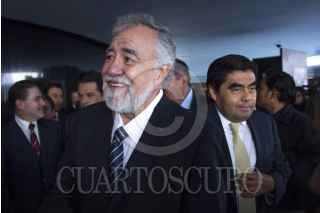 MÉXICO. D.F., 19 NOVIEMBRE2014.- Alejandro Encinas, senador del PRD junto a Miguel Barbosa, Coordinador del PRD en el senado durante la inauguración de la exposición fotografica en honor a Jose Revueltas en el Senado de la República. FOTO: ENRIQUE ORDÓÑEZ /CUARTOSCURO.COM