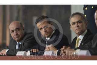 MÉXICO, D.F., 20NOVIEMBRE2014.- Enrique Peña Nieto, presidente de México, Jeús Murillo Karam, titular de la PGR y Miguel Ángel Mancera, jefe de gobierno del D.F. inauguraron el Encuentro Nacional de Procuración y Administración de Justicia en la residencia oficial de los pinos. FOTO: PRESIDENCIA /CUARTOSCURO.COM