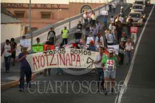 VERACRUZ, VERACRUZ, 22NOVIEMBRE2014.- Ciudadanos y maestros integrantes del Movimiento Magisterial Popular Veracruzano marcharon desde la ciudad de Cardel hasta el asta bandera de Veracruz para solidarizarse ante la situación de la desaparición de los 43 normalistas de Ayotzinapa en Iguala, Guerrero. La acción se denominó como “43 x 43”, en donde los manifestantes caminaron un total de 43 kilómetros sobre la carretera Xalapa-Veracruz. La marcha culminó en el boulevard costeño en donde exigieron justicia. FOTO: FÉLIX MÁRQUEZ /CUARTOSCURO.COM