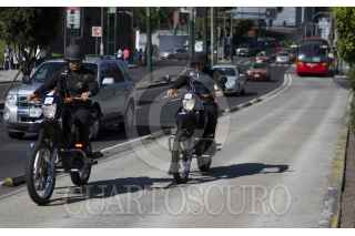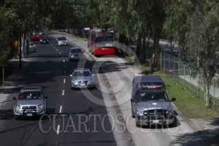 MEXICO, D.F., 23NOVIEMBRE2014.- Patrullas y motocicletas de la Secretaría de Seguridad Pública del Distrito Federal continúan custodiando a las unidades del Metrobús que cruzan Ciudad Universitaria como parte de un protocolo de seguridad implementado para evitar actos vandálicos. FOTO: IVÁN STEPHENS /CUARTOSCURO.COM