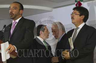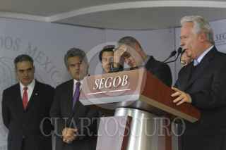 MÉXICO D.F., 24NOVIEMBRE2014.- Carlos Hurtado Valdés, titular del Sistema Nacional de Seguridad, en conferencia en la Secretaria de Gobernación dio a conocer los detalles de la campaña para reportar los robos y extravíos de celulares, y evitar que los aparatos sean utilizados en hechos delictivos se exhortó a los ciudadanos a obtener el llamado código internacional para Identificar un celular (IMEI) con el que los usuarios podrán deshabilitar de forma automática un teléfono en caso de robo o extravío. Los usuarios de teléfonos celulares deberán pulsar *#06# para obtener un código, que es el equivalente a la huella digital con el que quedará identificado el aparato y que servirá para evitar su comercialización en el mercado negro en caso de ser robado. Durante la conferencia fue acompañado de Andrés Chao Ebergeny, Subsecretario de Normatividad de Medios de la Secretaria de Gobernación, Andrea Ambrogi Domínguez, Presidente del Consejo de Seguridad y Justicia de Puebla, Gabriel Székely, Presidente de la Agencia Nacional de Telecomunicaciones, Amadeo Díaz, Director General de Radio, Televisión y Cinematografía, Alejandro Martí García, Presidente de la Asociación México S.O.S., A.C. Miguel Ángel Guerrero Aguilar, Gerente Jurídico de IUSACEL, Antonio Garza, Director de Relaciones Institucionales de Nextel y Miguel Calderón, Vicepresidente de Asuntos Regulatorios Telefónica. FOTO: GUILLERMO PEREA /CUARTOSCURO.COM
