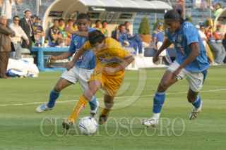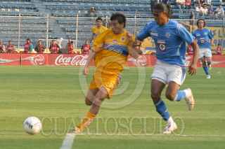 MEXICO,.D.F., 04 MARZO2006.- El delantero Sebastian González" Chamagol" de Tigres y el defensa Joel Huiqui del Cruz Azul durante el empate 1-1 en el Estadio Azul. FOTO: Rocío Ortiz/ CUARTOSCURO.COM