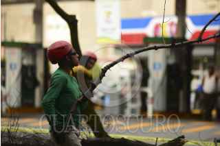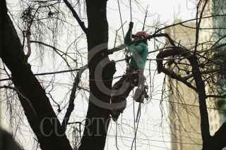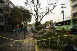 MÉXICO, D.F., 24NOVIEMBRE2014.- Una empresa privada fundada por un grupo de personas que comparten el gusto y conocimientos por los árboles en México el día de hoy realizó un trabajo en las inmediaciones del metro Chapultepec, donde se talaron dos arboles en peligro. Estos arboles ponían en riesgo a los vecinos de la colonia, ya que estaban a punto de colapsar debido a un hongo que enfermó el tronco, esto por el descuido del medio ambiente en la Ciudad de México. FOTO: ISABEL MATEOS /CUARTOSCURO.COM