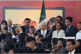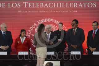 MÉXICO, D.F., 25NOVIEMBRE2014.- El secretario de Educación Pública, Emilio Chuayffet Chemor, afirmó que los telebachilleratos comunitarios constituyen un instrumento del sector para ampliar las oportunidades del nivel medio superior en las zonas rurales, donde se prevé instalar siete mil 500 planteles. Al encabezar la presentación de los telebachilleratos, el funcionario federal informó que con 350 millones de pesos gastados desde agosto pasado, ha aumentado a mil 500 la cifra de esos centros educativos, al indicar que para el próximo año, habrá 450 más y la meta para 2018 son siete mil 500 en el país. FOTO: MOISÉS PABLO /CUARTOSCURO.COM