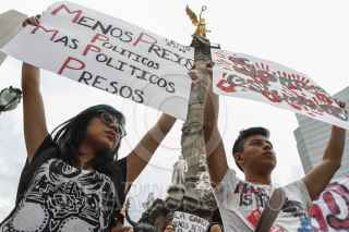 MÉXICO, D.F., 25NOVIEMBRE2014.- Jovenes estudiantes y de organizaciones sociales marcharon del Ángel de la Independencia al Zócalo de la ciudad, en demanda de que sean liberados los 11 detenidos el pasado 20 de noviembre, durante la manifestación por los 43 normalistas desaparecidos de Ayotzinapa. FOTO: ISAAC ESQUIVEL /CUARTOSCURO.COM