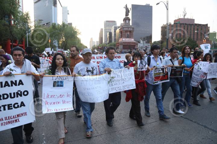MÉXICO D.F. 25NOVIEMBRE2014.- Integrantes de organizaciones sociales marcharon del ángel de la independencia hacia el zócalo de la ciudad exigiendo la aparición con vida de los 43 normalistas desaparecidos en Iguala y la libertad de los detenidos de los disturbios del pasado 20 de Noviembre. FOTO SAÚL LOPEZ /CUARTOSCURO.COM