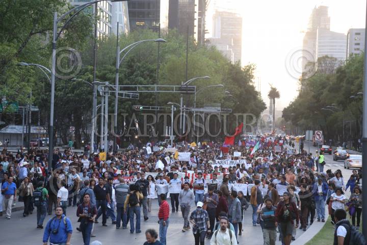 MÉXICO D.F. 25NOVIEMBRE2014.- Integrantes de organizaciones sociales marcharon del ángel de la independencia hacia el zócalo de la ciudad exigiendo la aparición con vida de los 43 normalistas desaparecidos en Iguala y la libertad de los detenidos de los disturbios del pasado 20 de Noviembre. FOTO SAÚL LOPEZ /CUARTOSCURO.COM
