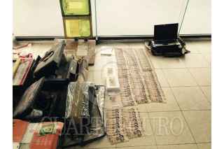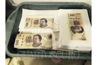 MÉXICO, D.F., 25NOVIEMBRE2014.- Tres personas fueron detenidas por presuntamente fabricar poco más de 17 mil billetes falsos de 500 pesos, informó este martes la Procuraduría General de la República (PGR) y el Banco de México (Banxico). Las tres personas detenidas en Guanajuato el 18 de noviembre, de nombre Marco Antonio Palacios, Issac Zárate y Jaime Flores, presuntamente forman parte de una banda dedicada a la falsificación de billetes principalmente de 500 pesos, cuya primera pieza se detectó en abril de 2012 en instituciones de crédito. FOTO: PGR /CUARTOSCURO.COM