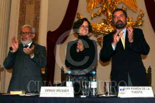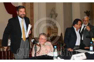 MÈXICO D.F. 4 MARZO 2006.- Julio Scherer García y Juan Ramon de la Fuente, Rector de la UNAM, se reunieron en una mesa de lectura celebrada en la XXVII Feria del Libro del palacio de Minerìa FOTO: Salvador Torres /CUARTOSCURO.COM