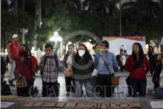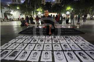 BOCA DEL RÍO, VERACRUZ, 26NOVIEMBRE2014.- Estudiantes de la Asamblea Interuniversitaria Veracruz - Boca del Río, realizaron un performance para conmemorar los dos meses del ataque que sufrieron alumnos de la escuela normal rural Raúl Isidro Burgos de Ayotzinapa, Guerrero. FOTO: FÉLIX MÁRQUEZ /CUARTOSCURO.COM