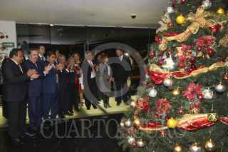MÉXICO, D.F., 27NOVIEMBRE2014.- Emilio Gamboa, Coordinador de los senadores del PRI en el senado junto a Miguel Barbosa Huerta, Presidente del Senado, durante el encendido del Árbol de Navidad en el Senado de la República. FOTO: CUARTOSCURO.COM