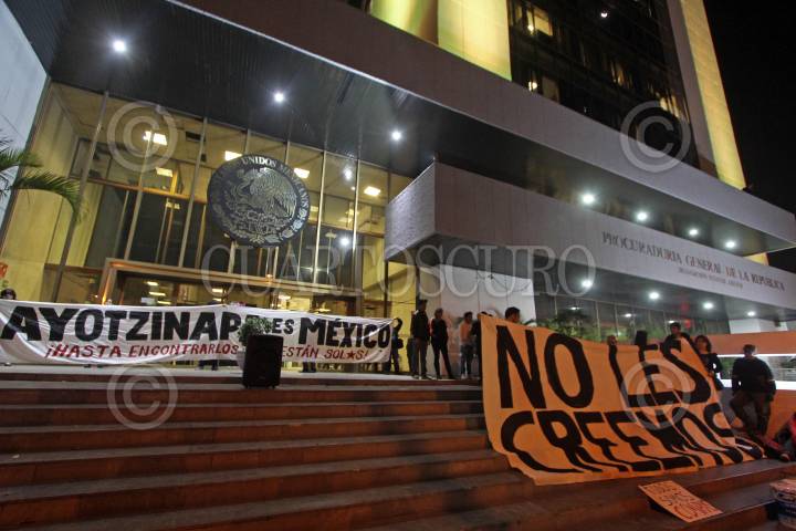 GUADALAJARA, JALISCO, 27NOVIEMBRE2014.- Esta tarde diversos colectivos y normalistas de Atequiza llevaron a cabo la toma simbólica de las oficinas de la Delegación de la Procuraduría General de la Republica (PGR) en el estado, esto a dos meses de la desaparición de los normalistas de Ayotzinapa. FOTO: FERNANDO CARRANZA GARCIA / CUARTOSCURO.COM