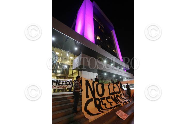 GUADALAJARA, JALISCO, 27NOVIEMBRE2014.- Esta tarde diversos colectivos y normalistas de Atequiza llevaron a cabo la toma simbólica de las oficinas de la Delegación de la Procuraduría General de la Republica (PGR) en el estado, esto a dos meses de la desaparición de los normalistas de Ayotzinapa. FOTO: FERNANDO CARRANZA GARCIA / CUARTOSCURO.COM