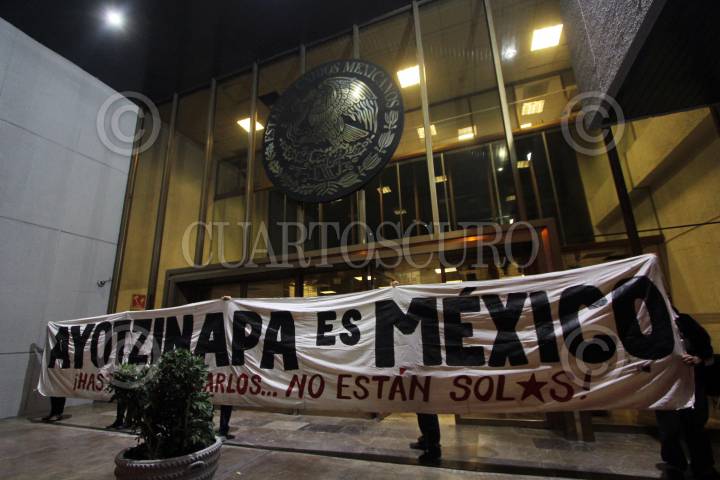 GUADALAJARA, JALISCO, 27NOVIEMBRE2014.- Esta tarde diversos colectivos y normalistas de Atequiza llevaron a cabo la toma simbólica de las oficinas de la Delegación de la Procuraduría General de la Republica (PGR) en el estado, esto a dos meses de la desaparición de los normalistas de Ayotzinapa. FOTO: FERNANDO CARRANZA GARCIA / CUARTOSCURO.COM