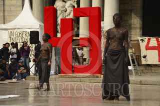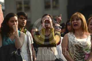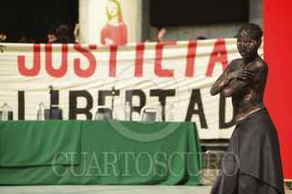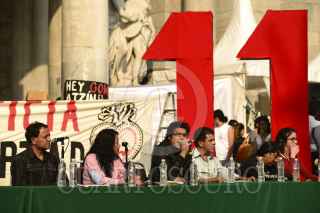 MÉXICO, D.F., 29NOVIEMBRE2014.- En el marco de Arte 43 Toma Política-Cultural, Bellas Artes 43 Libertad Presos del Estado +11, se llevaron a cabo varias puestas en escena y obras pictóricas se exhibieron en la explanada del Palacio de Bellas Artes, también algunos de los padres de familia de los 11 detenidos el pasado 20 de noviembre ofrecieron una conferencia de prensa, donde informaron sobre la liberación de los estudiantes y la poca información que las autoridades les han brindado al respecto, como el hecho de que no se sabe cuando llegaran a la ciudad. FOTO: ISABEL MATEOS /CUARTOSCURO.COM