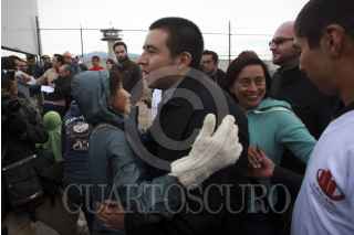 VILLA ALDAMA, VERACRUZ, 29NOVIEMBRE2014.- Cerca de las 16:00 horas de este sábado quedaron en libertad siete de los ocho jóvenes detenidos el 20 de noviembre en la Ciudad de México e internos en el penal de Villa Aldama. Mientras que el joven chileno Lawrence Maxwell, fue trasladado a las oficinas del Instituto Nacional de Migración en el puerto de Veracruz. FOTO: FÉLIX MÁRQUEZ /CUARTOSCURO.COM