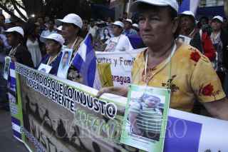 OAXACA, OAXACA, 30NOVIEMBRE2014.- La décima Caravana de Madres Mesoamericanas que recorre el país en busca de los más de 150 mil migrantes desaparecidos, llego al estado donde dieron una caminata en el zócalo de la ciudad y un mitin con el apoyo de la sección 22 de la CNTE. FOTO: ARTURO PÉREZ ALFONSO /CUARTOSCURO.COM