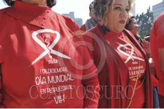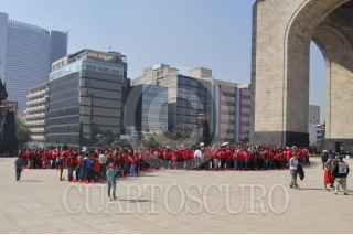 MÉXICO D.F., 01DICIEMBRE2014.- En el marco del Día Mundial de la Lucha contra el Sida, realizaron moño humano, en el Monumento a la Revolución. FOTO: GUILLERMO PEREA /CUARTOSCURO.COM