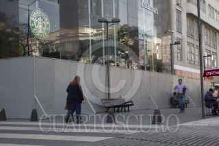 MÉXICO D.F., 01DICIEMBRE2014.- Colocan Vayas de seguridad en algunos comercios en avenida Juárez, debido a las marchas que están programadas para esta tarde en la ciudad. FOTO: GUILLERMO PEREA /CUARTOSCURO.COM