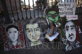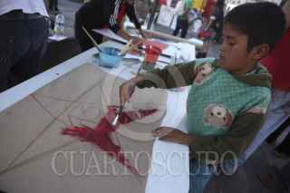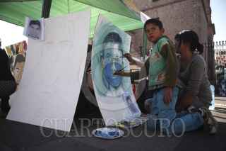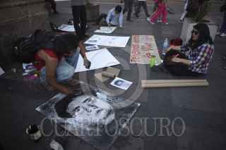 MORELIA, MICHOACÁN, 01DICIEMBRE2014.- Decenas de personas se reunieron durante la tarde de hoy en la plaza Melchor Ocampo en el centro histórico de esta ciudad capital, en el lugar se pintaron los rostros en forma de protesta por los 43 normalistas desaparecidos el pasado 26 de septiembre en Iguala, Guerrero. El evento fue convocado por el Frente Estatal Contra la Represión y el Terrorismo de Estado. FOTO: ALAN ORTEGA /CUARTOSCURO.COM