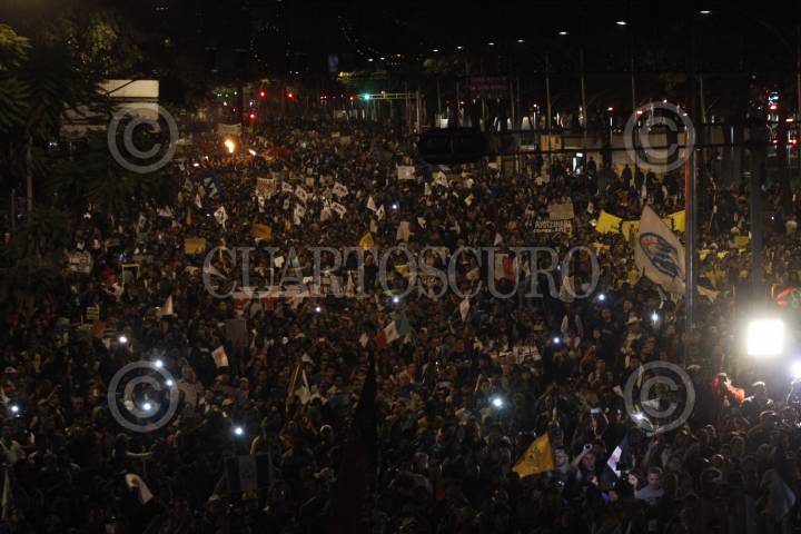 MÉXICO D.F. 01DICIEMBRE2014.- Integrantes de organizaciones sociales marcharon de zócalo de la Ciudad de México al Ángel de la Independencia en apoyo a los normalistas desaparecidos en Iguala Guerrero. En la imagen algunos manifestantes se enfrentaron com granaderos y resultaron heridos. FOTO SAÚL LOPEZ /CUARTOSCURO