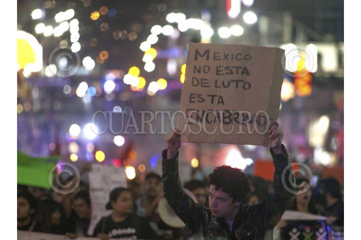 MÉXICO D.F. 01DICIEMBRE2014.- Integrantes de organizaciones sociales marcharon de zócalo de la Ciudad de México al Ángel de la Independencia en apoyo a los normalistas desaparecidos en Iguala Guerrero. En la imagen algunos manifestantes se enfrentaron com granaderos y resultaron heridos. FOTO SAÚL LOPEZ /CUARTOSCURO