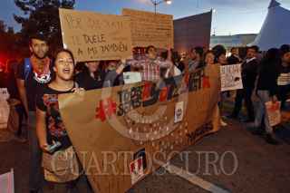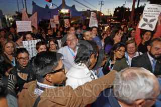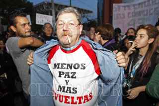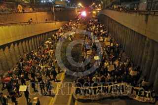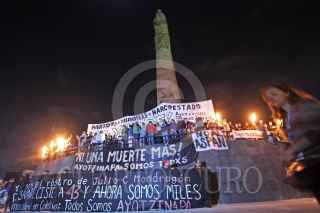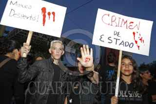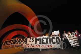 GUADALAJARA, JALISCO, 01DICIEMBRE2014.- Esta tarde saliendo de dos puntos de la ciudad, uno el parque Juárez o mejor conocido como Parque Rojo y el segundo las Instalaciones de le Expo, donde se lleva a cabo la edición 28 de la Feria Internacional del Libro de Guadalajara (FIL), asociaciones civiles, estudiantes y algunos escritores, entre ellos Paco Ignacio Taibo y Benito Taibo Marcharon hasta la Glorieta de los Niños Héroes para sumarse a las 60 ciudades del país, en protesta a los hechos en Ayotzinapa y a los dos años de gobierno del presidente Peña Nieto. FOTO: FERNANDO CARRANZA GARCIA / CUARTOSCURO.COM.