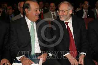 MEXICO, D.F. 09MARZO2006.- Carlos Slim, presidente honorario vitalicio del Grupo Carso y Joseph Stiglitz, Premio Nobel de Economía durante el Foro para la "Competitividad del país" en el Hotel Sheraton Centro Històrico. FOTO: Rocío Ortiz/CUARTOSCURO.COM
