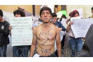 GUANAJUATO, GUANAJUATO, 01DICIEMBRE2014. ¡Vivos de los llevaron, vivos los queremos!" y "¡Fuera Peña Nieto, fuera Peña Nieto", volvieron a ser las consignas más fuertes durante la marcha en la capital de Guanajuato por los 43 normalistas desaparecidos de Ayotzinapa. FOTO: GERARDO M. GARCÍA /CUARTOSCURO.COM