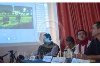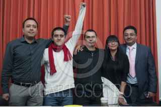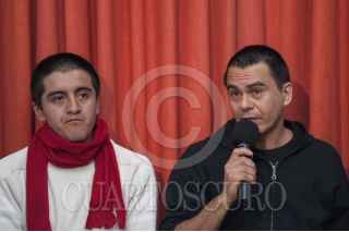 MÉXICO, D.F., 02DICIEMBRE2014.- Juan Daniel López y Lawrence Maxwell, quienes fueron detenidos el pasado 20 de noviembre por parte de la policía de manera arbitraria durante el desalojo en el zócalo después de la manifestación por el caso Ayotzinapa y que fueron liberados el pasado sábado por falta de pruebas, ofrecieron una conferencia de prensa para narrar la forma en que fueron detenidos y golpeados por policías federales y capitalinos, de igual manera refirieron como fueron torturados física y psicológicamente en los traslados a la SEIDO y al penal de Villa Aldama, Veracruz. Durante la conferencia fueron acompañados por los abogados Karla Michel Salas, David Peña y Armando Barrera, quienes hablaron sobre las acciones penales del caso. FOTO: DIEGO SIMÓN SÁNCHEZ /CUARTOSCURO.COM