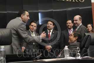 MÉXICO, D.F., 02DICIEMBRE2014.- Los coordinadores Jorge Luis Preciado, PAN y Emilio Gamboa Patrón, PRI, durante la sesión en el Senado de la República. FOTO: CUARTOSCURO.COM
