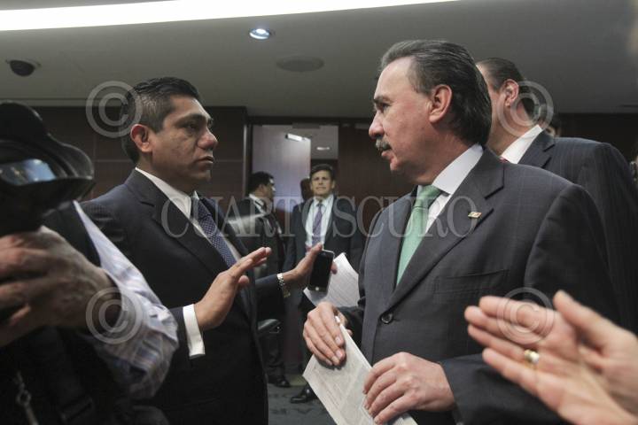 MÉXICO, D.F., 02DICIEMBRE2014.- Los coordinadores Jorge Luis Preciado, PAN y Emilio Gamboa Patrón, PRI, durante la sesión en el Senado de la República. FOTO: CUARTOSCURO.COM