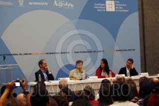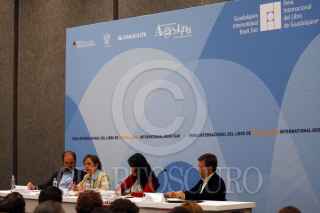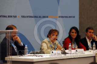 GUADALAJARA, JALISCO, 02DICIEMBRE2014.- Esta noche en la Expo y en el marco de la edición 28 de la Feria Internacional del Libro de Guadalajara 2014 (FIL), se llevo a cabo la presentación del Libro “Disentir en Silencio: Violencia Contra la Prensa y Criminalización de la Protesta en México” y estuvo encabezada por los Periodistas Carmen Aristegui, Lidia Cacho, Juan Villoro y Darío López. FOTO: FERNANDO CARRANZA GARCIA / CUARTOSCURO.COM