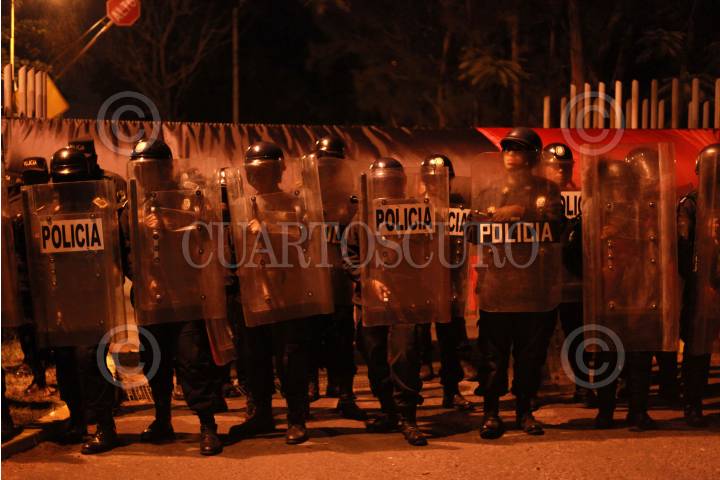 VERACRUZ, VERACRUZ, 02DICIEMBRE2014.- Trabajadores de la fábrica de tubos Tenaris-Tamsa intentan la noche de este martes, establecer una huelga por diversos problemas sindicales y el incumplimiento de pliego petitorio, sin embargo, elementos de la Policía Estatal y Naval han impedido que tomen las instalaciones. FOTO: FÉLIX MÁRQUEZ /CUARTOSCURO.COM