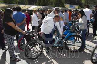 MÉXICO, D.F., 03DICIEMBRE2014.- La Fundación Operación México, donó 100 sillas de ruedas para personas con alguna discapacidad en el marco del “Día Internacional de las Personas con Discapacidad” que se realizo explanada de la delegación Miguel Hidalgo. FOTO: GUILLERMO PEREA /CUARTOSCURO.COM