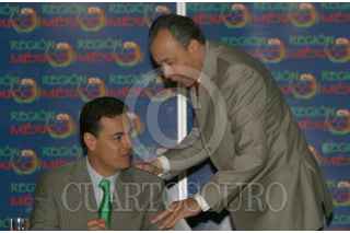 MEXICO, D.F. 09MARZO2006.- Ismael Hernández, gobernador de Durango y José Reyes Baeza , gobernador de Chihuahua durante el "1er Foro Nacional Impulsando el Desarrollo Regional" en el Centro Banamex. FOTO: Rocío Ortiz/CUARTOSCURO.COM